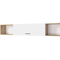 Прихожая «Кармен-7Н» имеет всё необходимое, чтобы заменить полноценную прихожую. Слева – элегантное зеркало и открытая секция с закруглёнными угловыми полками. Справа располагается вместительный отдел с глухой дверцей, под которым предусмотрена открытая ниша с полкой, где можно хранить обувь или сумки. Центральную часть занимают открытая вешалка с тремя металлическими крючками и небольшая тумба с распашной створкой. Вверху предусмотрена зона для головных уборов, опирающаяся на короткую хромированную трубу.
