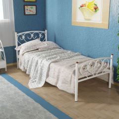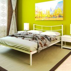 Металлическая прикроватная тумба станет прекрасным дополнением к кровати. Фигурные завитки на опорах тумбы повторяют узор спинок кровати, делая интерьер спальни завершенным. Тумба имеет полку и выдвижной ящик для мелочей.